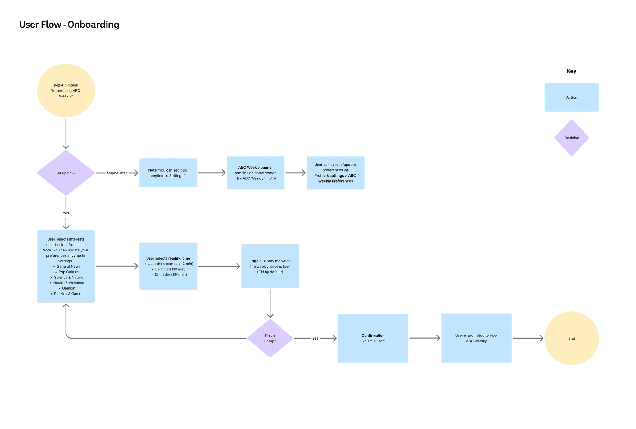 Onboarding for ABC Weekly - allows users to select their content preferences