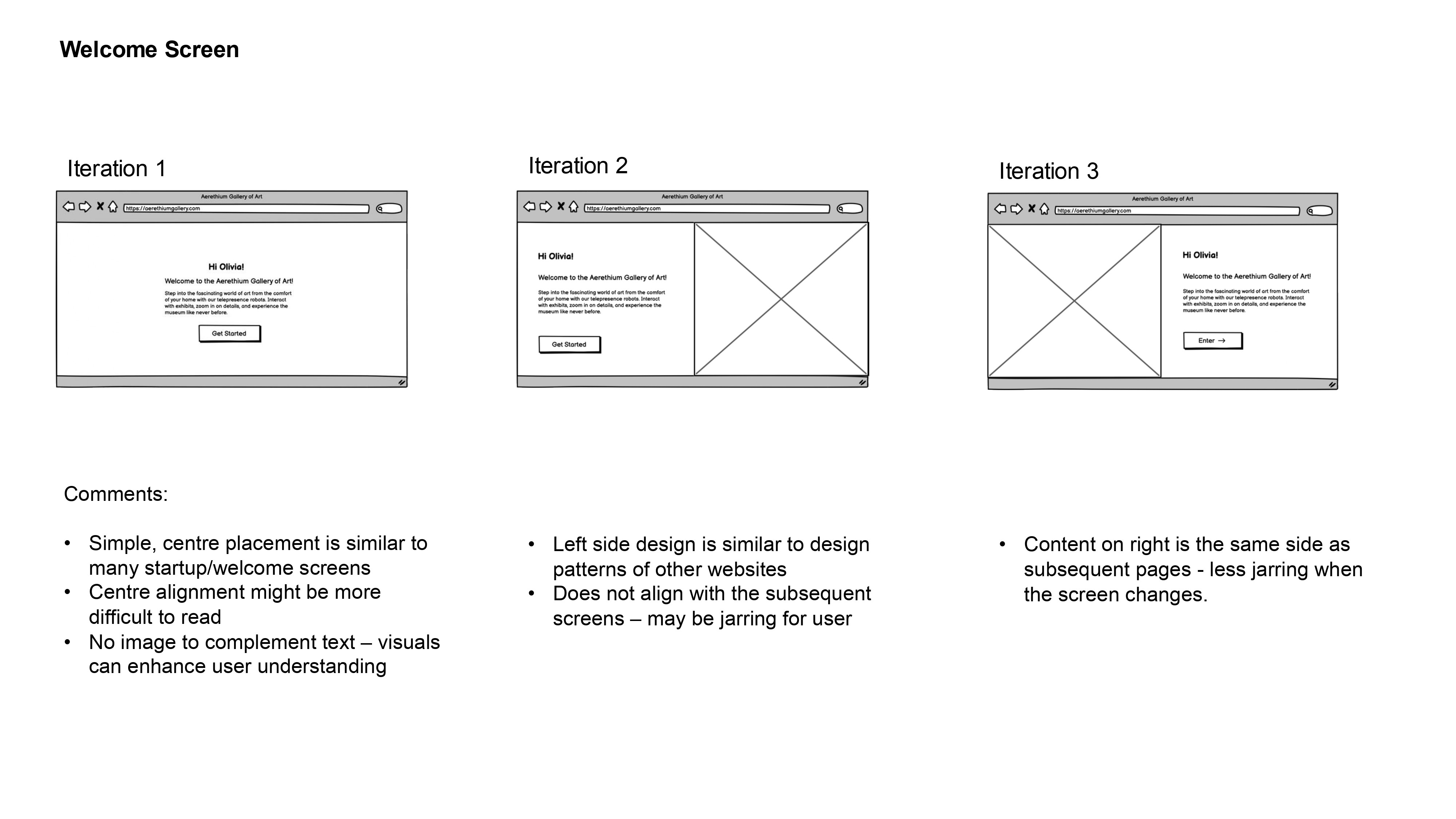 The main concern was that the first screen does not provide much context to the user, and may be confusing when users first enter. To mitigate this, a welcome screen interface was added to the user flow.