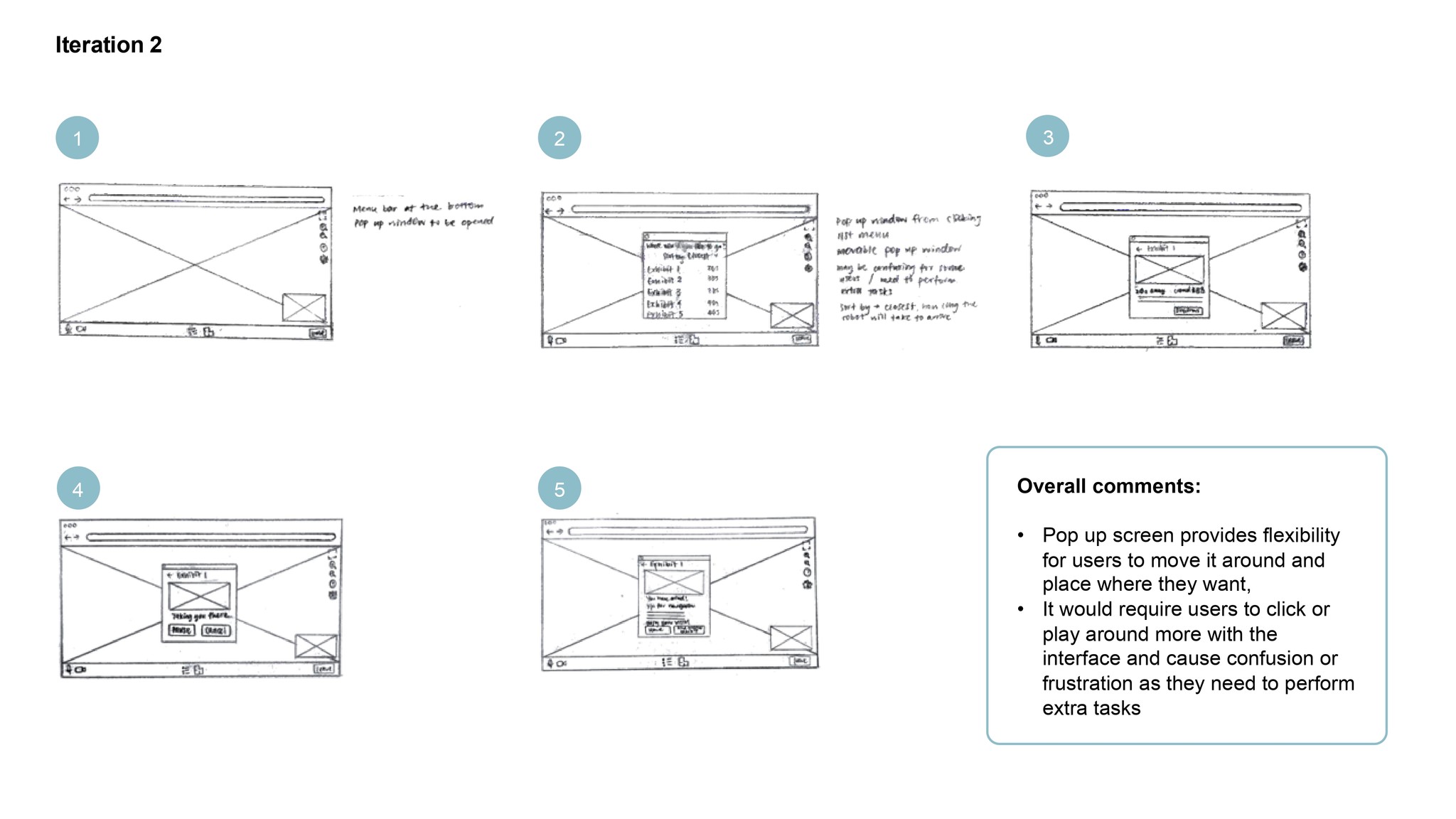 Based on the user flow, I sketched various iterations and designs of the interface. I looked at various popular design patterns to ensure the look and feel of the interface is familiar and intuitive to users, reducing the learning curve and enhancing overall usability.