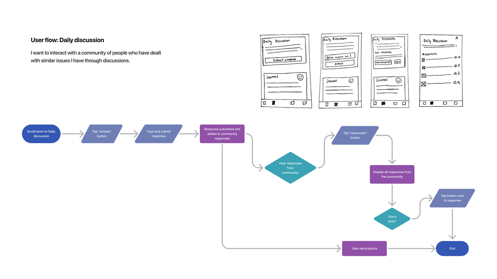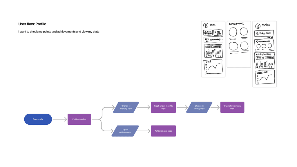 Our user flow diagrams outlined the tasks that users would perform to reach a goal. This helped us transform our ideas into sketches and wireframes.