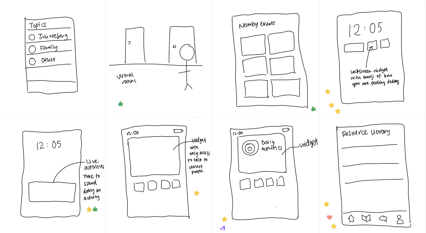 We used the crazy 8s method to quickly generate initial ideas to explore different design directions.